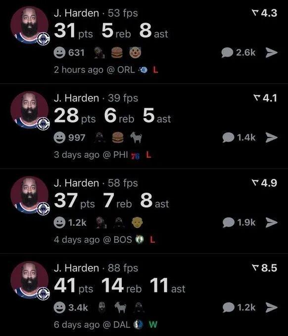 但话又说回来,全员整装的快船就能让哈登以最健康的方式打球了吗?恐怕也未必。