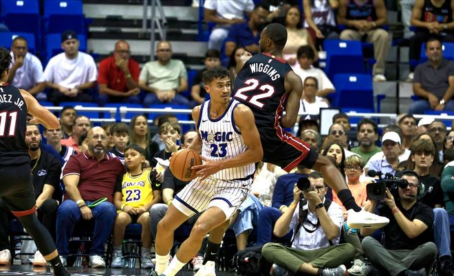 NBA季前赛如火如荼地进行着,在一场东部焦点之战中,传统豪强迈阿密热火被上赛季崛起的魔术逆转,最终在主场以8分之差遭遇首败。尽管比赛输了,但南海岸军团也并非毫无收获,侧翼大将安德鲁-维金斯的表现就很是亮眼。嘴哥这场比赛仅仅只打了半场,在有限的12分钟上场时间里,他运动战6中4,其中三分球两投全中,贡献11分2助攻1抢断。很显然,维金斯这两节比赛已经征服了斯波教练,考虑到季前赛的胜负无关痛痒,嘴哥也得到了两节打卡下班的待遇。