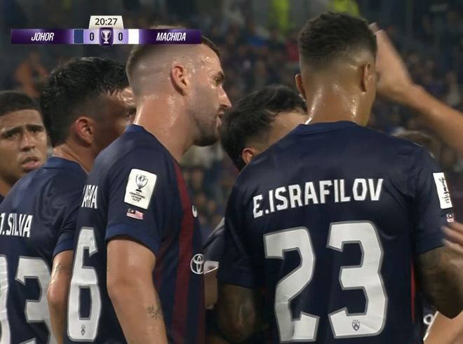 柔佛新山主场对阵町田泽维亚,比赛的第20分钟,场上出现意外情况,町田泽维亚队开出战术角球,柔佛新山球员席尔瓦在禁区内推倒罗相镐,裁判判罚点球,相马勇纪来主罚点球,结果这位日本国脚将球踢在了门柱上,太追求角度了,错失机会。在随后的比赛中,双方的进攻雷声大雨点小,最终0-0互交白卷。